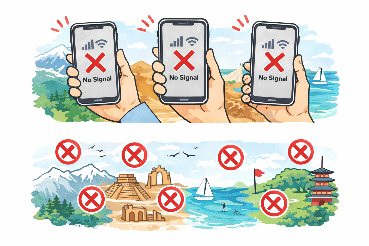 このようなケースでは、端末やeSIMに問題がなくても「圏外」と表示されることがあります。